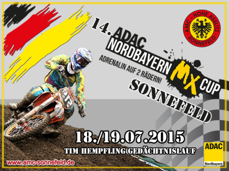 Im Jahr 2015 nimmt der AMC Sonnefeld, ertsmalig an der neuen Serie "ADAC Nordbayern MX Cup" teil. Nähere Informationen zur Veranstaltung finden Sie bereits jetzt auf der Internetseite des ADAC Nordbayern.