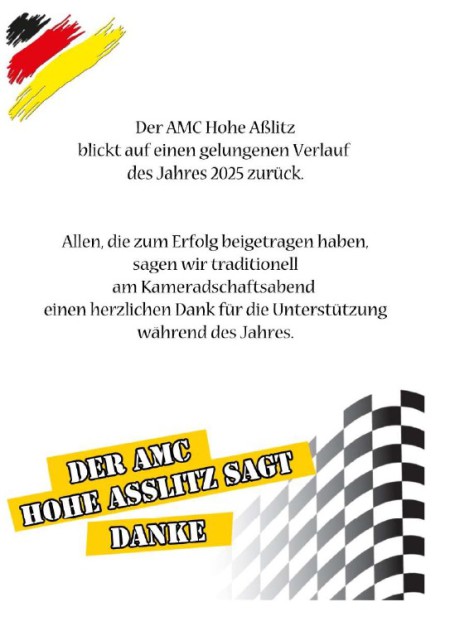 Der Dank gilt natürlich auch den Genehmigungsbehörden, den Anwohnern und nicht zuletzt den zahlreichen, ehrenamtlichen Helfern, Fahrer und Betreuern sowie unserem Sportleiter Björn Faber.