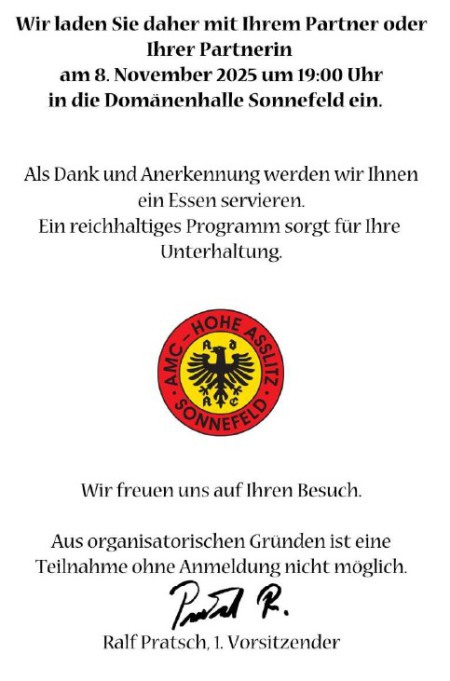 Auch die Bewirtung in der Domäne und an der Sonderpüfung fand regen Zuspruch. Vom AMC Sonnefeld holte sich Martin Eckart den Klassensieg in C5, Maximilian Roth fuhr in der Klasse Y3 auf den 8. Platz und Hermann Feyler belegte den 20. Platz bei den Senioren über 65 Jahren.