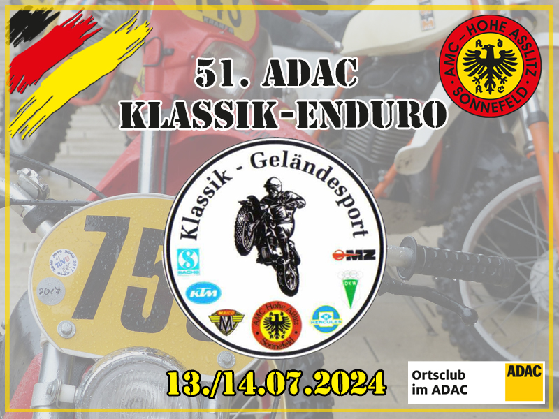 Wir veranstalten dieses Jahr unsere 51. ADAC-Klassik Zuverlässigkeitsfahrt "Rund um die Hohe Aßlitz" für Solo-Motorräder und Gespanne.