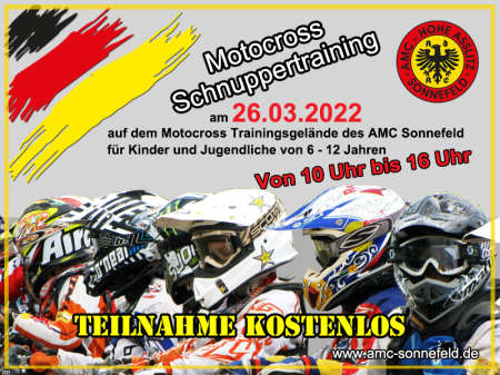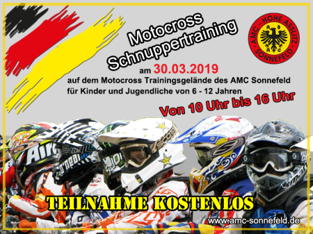 Beginn ist am 30. März um 10.00 Uhr auf dem Trainingsgelände des AMC Sonnefeld. Es stehen clubeigene Motorräder zur Verfügung.